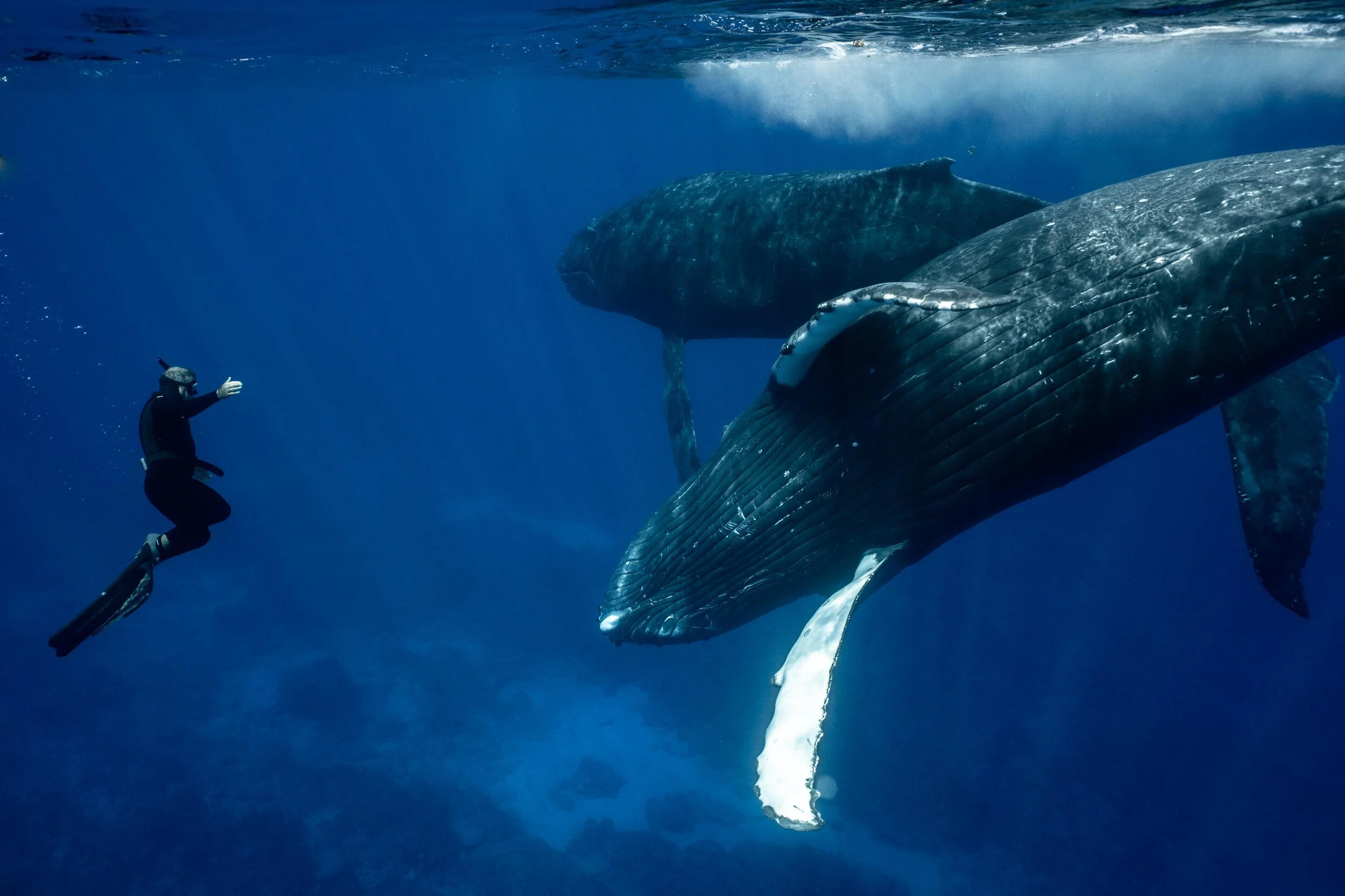 Swimming with humpback whales is a relatively safe activity as long as you follow distance rules and remember that the biggest danger is actually other boats. The boat is run by an experienced captain and crew, with a licensed guide on board. In-water groups are small, encounters are respectful, and guidelines are strictly followed. The chance of encounters with oceanic sharks is relatively large. While curious, they are largely harmless, but our guides on ground will make a call on if entering the water is safe.